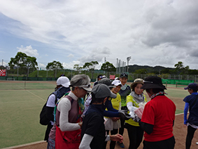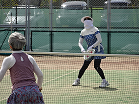今年の参加者は20名、いつものように紅白にわかれて15分マッチで、ペアが変わりながら対戦コートを移動してまわります。
