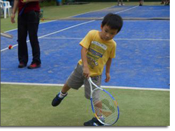 その後、ボールとラケットを使って遊び、最後はジュニア用のコートで打ち合いもしました。みんなとてもいい笑顔でした。