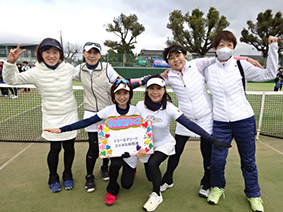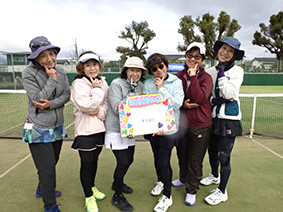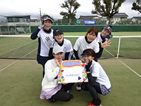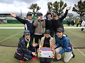 ダブルス3組による団体戦で、福岡・長崎・熊本からの参加もあり、16チーム98人、スタッフ含めちょうど100人で楽しみました。